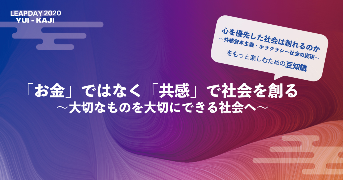 今回のブログでは、LEAP DAY 2020 結風のトークセッションの中でも注目されている 「心を優先した経済社会は創れるのか 〜共感資本社会・ホラクラシー社会の実現〜」 について詳しくご紹介したいと思います。