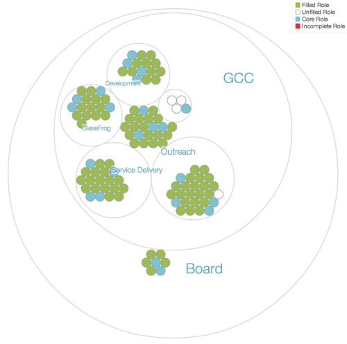 ホラクラシーの提唱者であるブライアン・j・ロバートソンさんが創設したHolacracyOne LLC.からイメージしやすい図をご紹介します。
