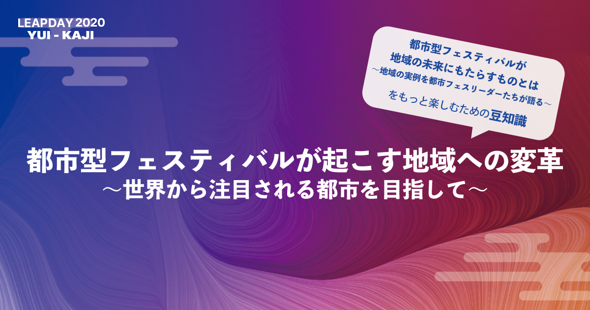 今回は、都市型フェスティバルという、地域を盛り上げるため、地域から世界を変えるために行われているフェスティバルの実行委員達が集まる「都市型フェスティバルが地域の未来にもたらすものとは〜地域の実例を都市フェスリーダーたちが語る〜」についてご紹介します!