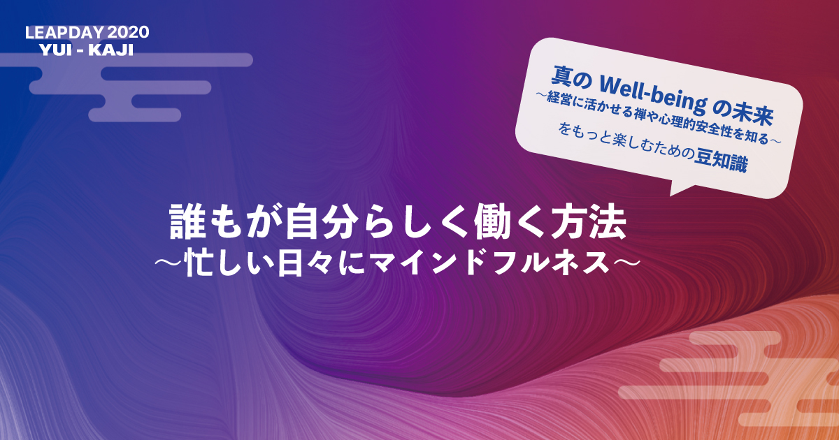 今回のブログでは、LEAP DAY 2020 結風のトークセッションの中でも注目されている「真のWell-beingの未来 〜経営に活かせる禅や心理的安全性を知る〜」について詳しくご紹介したいと思います。