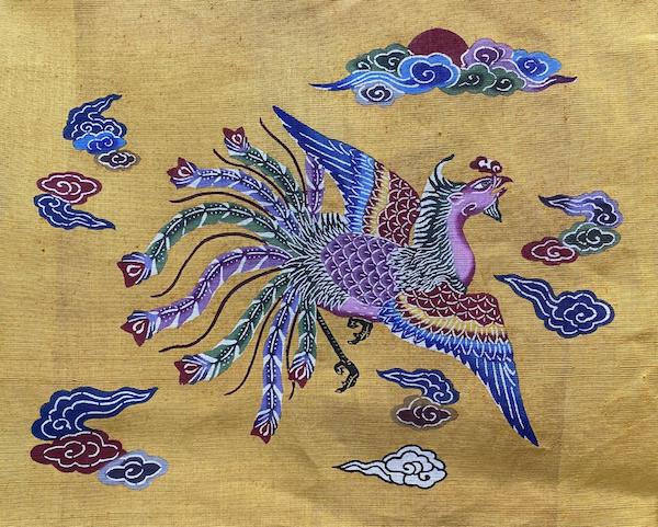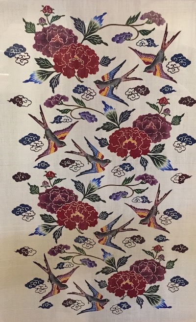 日本には他にも、江戸紅型と京紅型という染め物があるのですが、琉球紅型は他の染め物よりも色彩が鮮明で、配色のコントラストが大胆、沖縄では見られない様々な国の動植物や四季のデザインが合わさっているという特徴があります。