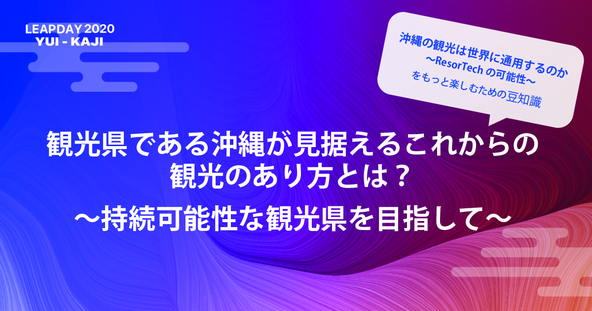 今回のブログでは、LEAP DAY 2020 結風のトークセッションである「沖縄の観光は世界に通用するのか 〜ResorTechの可能性〜」について詳しくご紹介します。