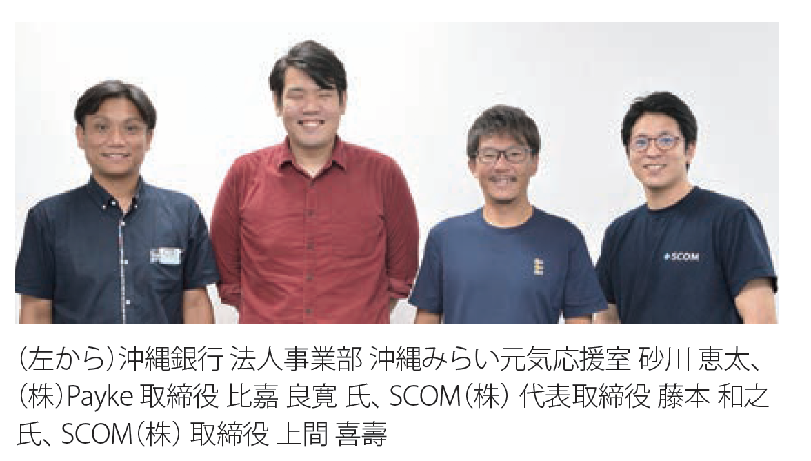 その他、地域に根ざす金融機関として、県内中小企業の経営支援を最も重要な役割の一つという考えのもと、SCOM(株)が運営する「SCOM投資事業有限責任組合」に出資もされています。同社は、県内の現役の経営者により設立され、「沖縄で1万人のくらしを変えていく」をコンセプトに、中小零細企業支援に特化した出資とハンズオン支援を実施する会社です。同社への出資および地域密着型の金融機関として有するネットワークを活かした企業紹介を通じて県内企業の成長を支援し、地域経済の持続的な発展に貢献されています。
