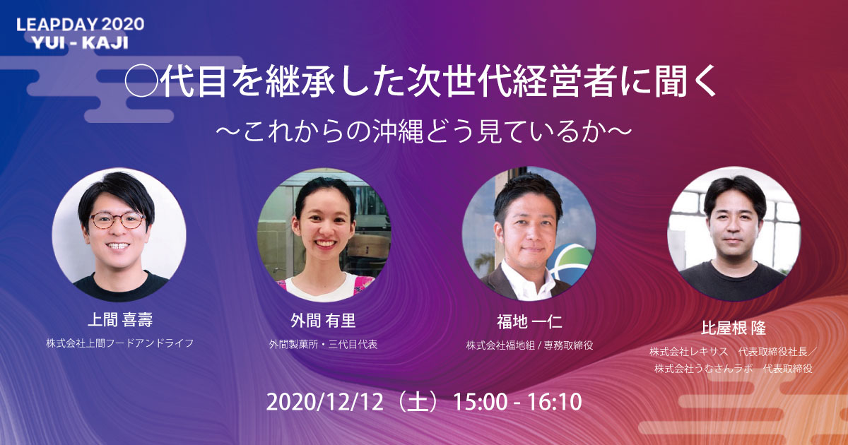 沖縄では、2代目、3代目として事業を引き継いだ経営者が数多くいます。中でも、「今までやってきたことをそのまま受け継ぐのではなく、アップデートする」若手経営者たちが注目を集めています。そんな2代目、3代目を継ぐ沖縄県内の若手経営者たちが登壇し、「なぜ事業を継ごうと思ったのか」「事業承継の魅力と大変さ」「これからの沖縄の可能性」などについてざっくばらんに語ります。